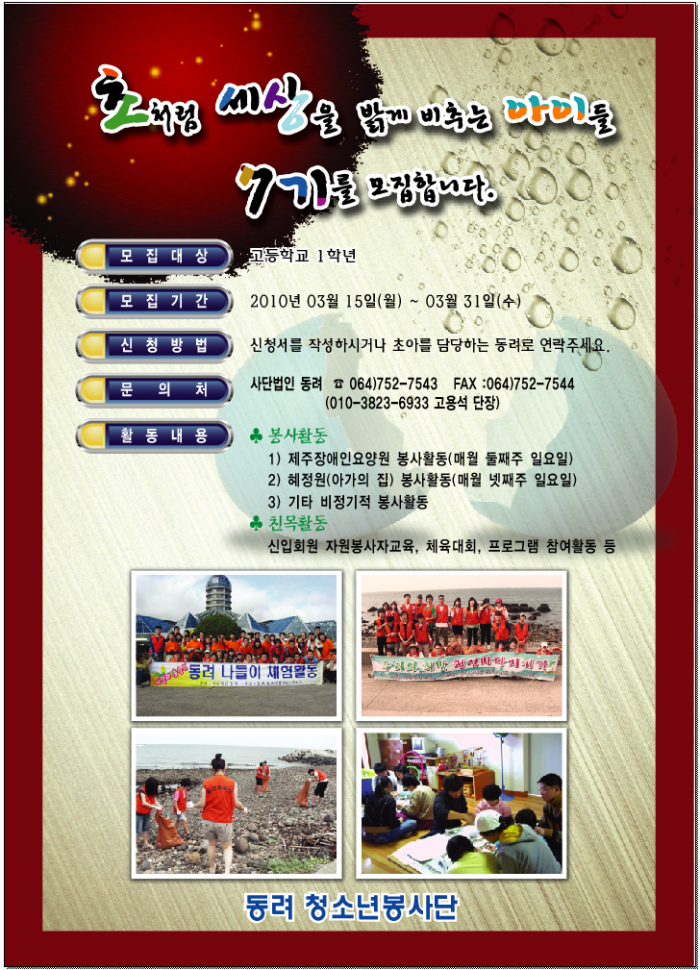 동려 청소년 자원봉사자 모집