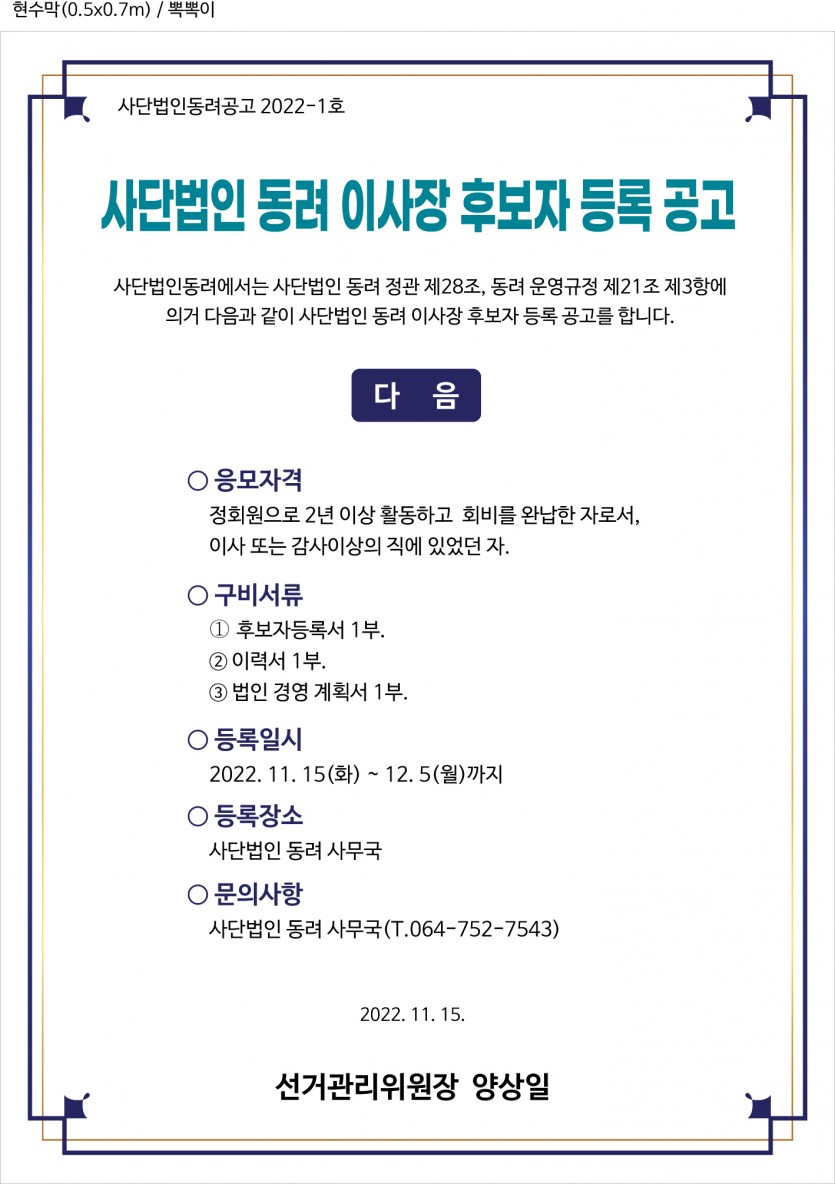2022년 사)동려 제11대 차기이사장 후보자 등록 공고