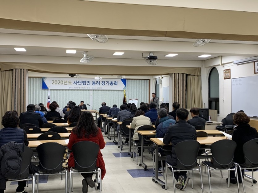 사단법인 동려(이사장 안 식)는 지난 18일(토) 동려강당에서 정회원 40여명이 참석한 가운데 2020년 정기총회를 개최하였다. 2019년도 사업실적 및 결산보고와 2020년 사업계획 및 예산안 승인 등을 심의했다. 안 식이사장은 2020년도 동려 발전을 위해 힘쓸 것을 약속했다.